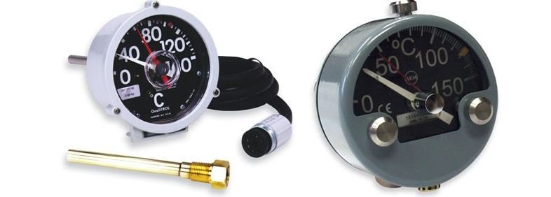 Qualitrol165/167 and AKM 47080 Side-Mount Thermometer side-mounted thermometers offer easy to read temperature indication with a resettable maximum pointer for ease in the field. Features up to 3 control and/or alarm switches (contacts). Models can be combined with a well (pocket) to allow for replacement without draining or compromising the tank.